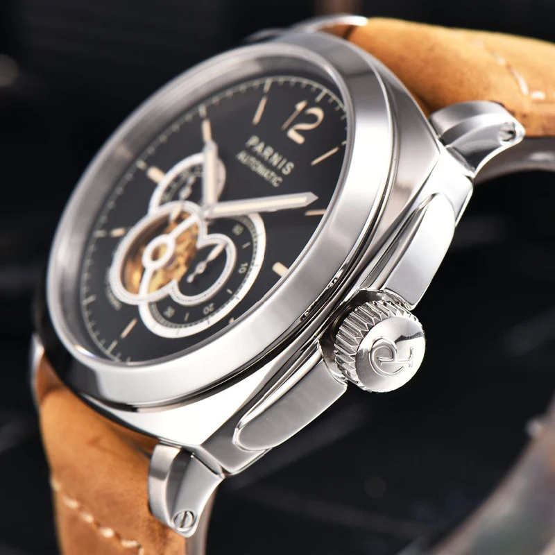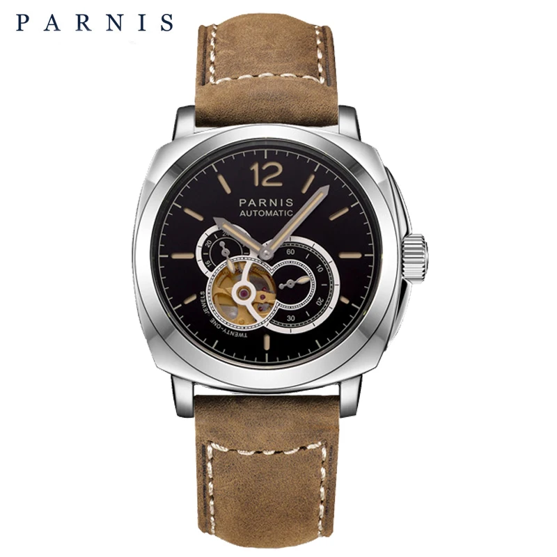 Big Deal Parnis Watch Men 44mm Automatic Skeleton Men's Mechanical Watches 21 Jewels Luminous 100M Waterproo